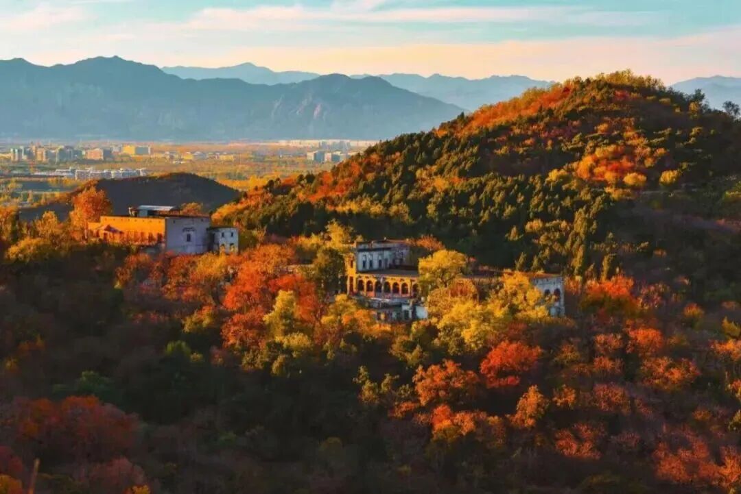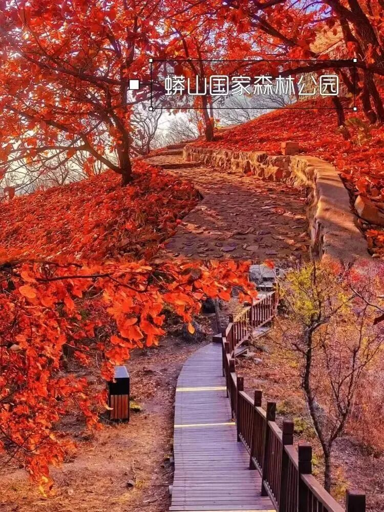 特色:蟒山国家森林公园是北京最大的森林公园之一,拥有丰富的红叶树种。秋日里,这里的红叶漫山遍野,层林尽染,构成了一幅绚丽的画卷。登上1899级台阶,可以俯瞰整个北京的秋天全景,感受大自然的壮美。