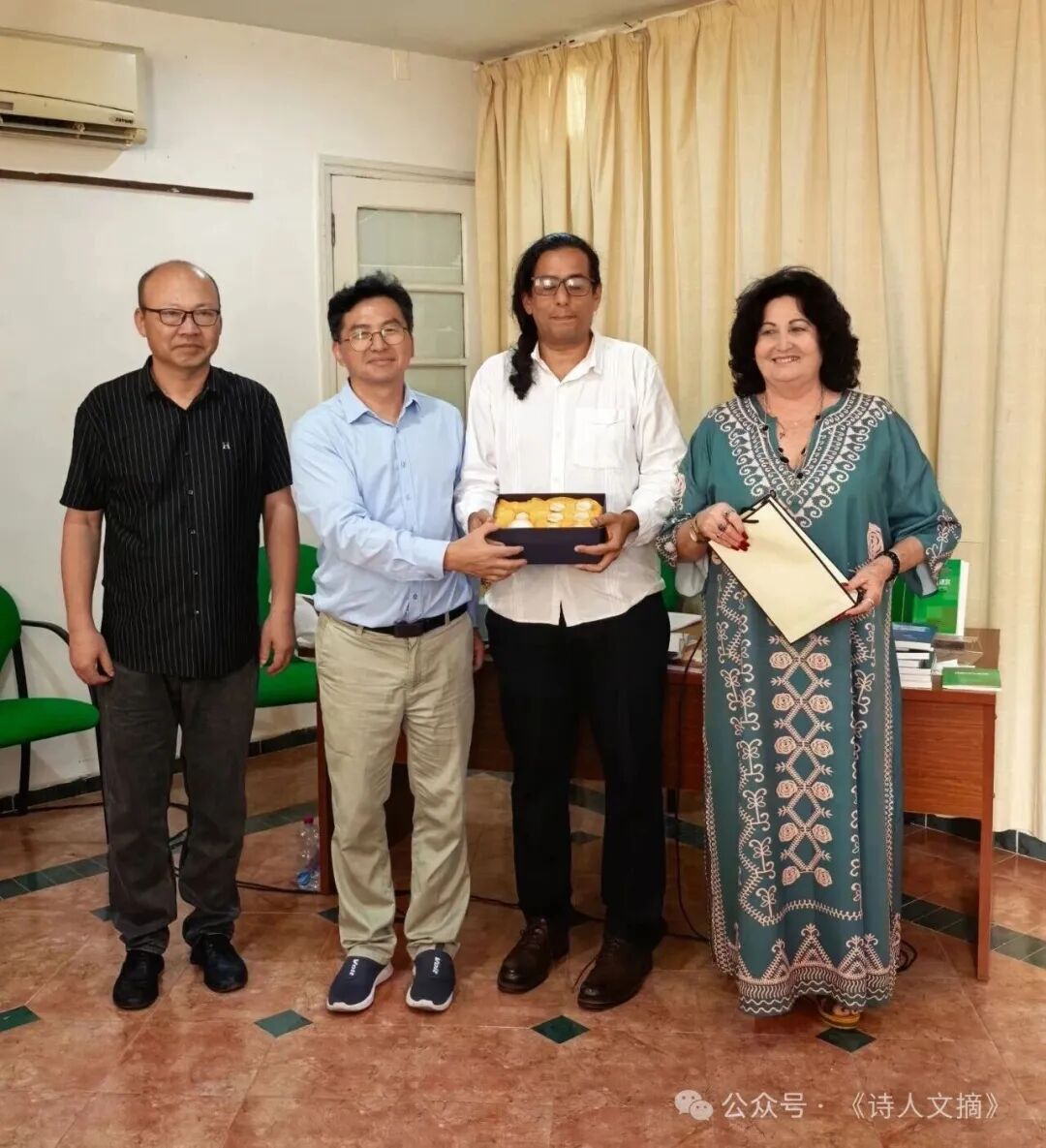 2025年9月29日,由著名诗人、翻译家北塔任团长的中国诗歌代表团走进哈瓦那古色古香的杜尔塞▪玛丽亚▪洛伊斯纳文化中心(Dulce María Loynaz Cultural Center)。文化中心主任、诗人托马萨▪冈萨雷斯(Tomasa González)女士,古巴共和国文化部直属古巴作家协会诗歌文化中心(Centro Cultural CubaPoesía, del Ministerio de Cultura de la República de Cuba)主任兼哈瓦那国际诗歌节组委会主任、诗人卡雷尔▪莱瓦▪费雷尔(Karel Leyva Ferrer)先生等约20多位诗人,作家,艺术家等候在这里。