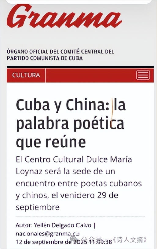 《格拉玛报》关于中国诗歌代表团访问古巴的新闻报道