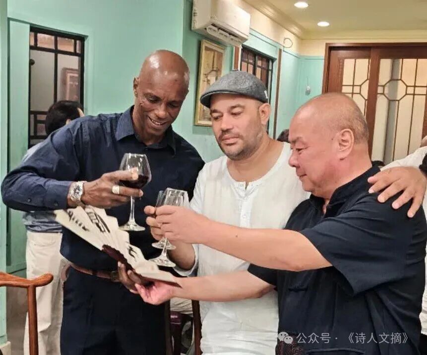 纯粹、有序、微微紧张的交流会结束之时,已近黄昏。当哈瓦那老城区的大街上华灯初上,双方与会诗人在北京餐厅举行了极具中国风格的晚宴。中古诗人相聚一起,频频举杯,品尝中国月饼,共叙诗话,直至一轮明月高悬加勒比海的夜空。