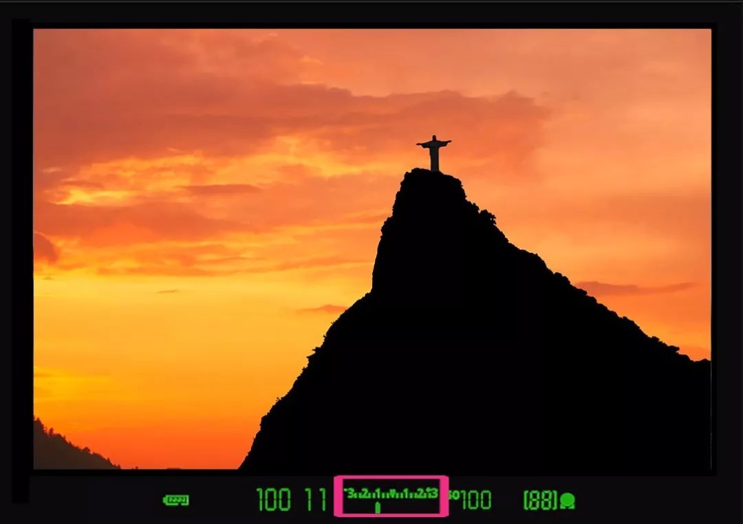 红框里的数字是进行加减曝光操作的数据。拍摄剪影的时候,一定要减曝光。