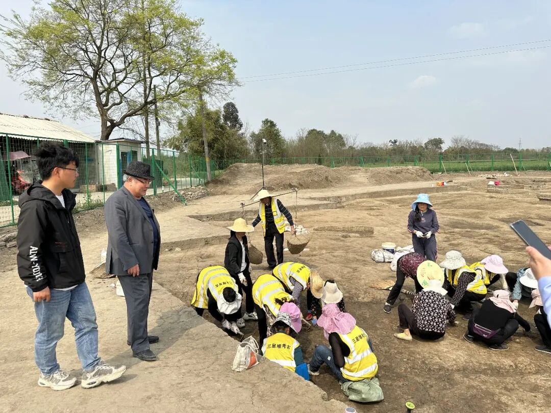 图注改为:2024年春,岳南(左二)在三星堆发掘工地调查访问