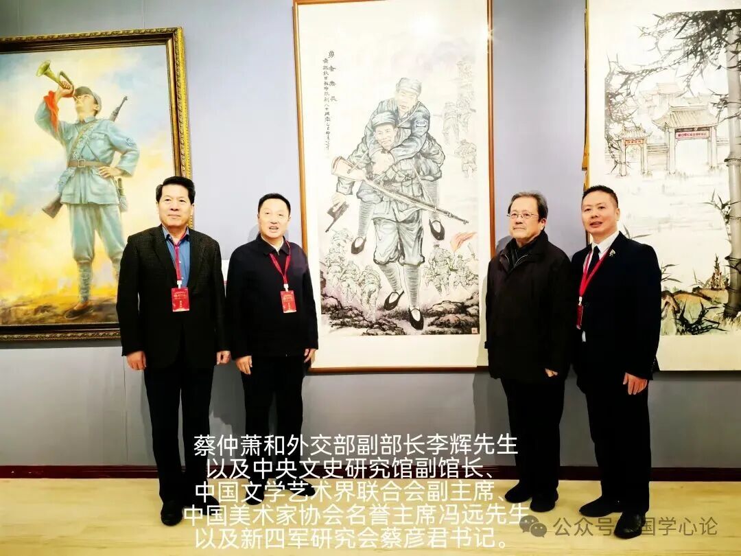 民盟中央副主席吴为山为本届书画展提供雕塑作品——《铁军忠魂》,中国书法家协会主席孙晓云为新四军美术作品展题写的《铁军传奇》。著名学者、书画家、诗人、作家蔡仲萧为陈毅元帅的诗《青松》配画一幅。并得到陈毅元帅之子陈昊苏会长和冯远主席以及李辉副部长和徐国宝副主席的高度赞扬。这是他继中国美术馆、国家博物馆、国家图书馆、琉璃厂书画展之后又一次高级别的书画展。本次活动除北京新四军研究会各分会的会员,还有社会各界党政机关、各院校师生组团观展,并给予高度评价。