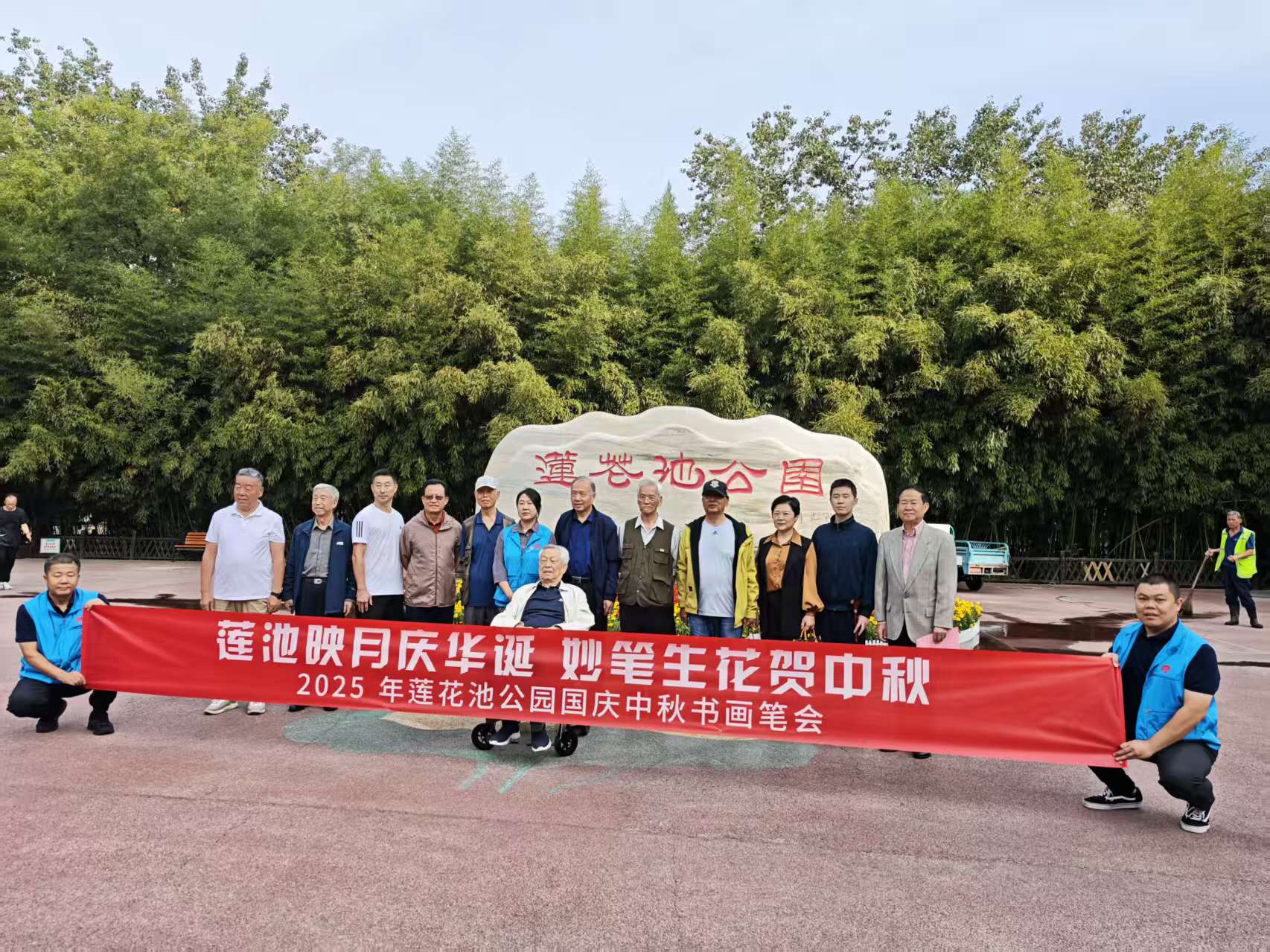 [摘要] 2025年莲花池公园国庆中秋游园会启幕笔会嘉宾合影金秋送爽,双节同庆。2025年9月25日至10月10日,由北京市丰台区园林绿化局主办,北京市丰台区公园管理中心、莲花池公园管理处承办,北京老字号协会、莲花池社区、北京蕴文科技发展有限公司、古砚堂书画院鼎力支持的“莲池映双节·盛世共欢歌”2025年莲花池公园彩叶观赏季暨国