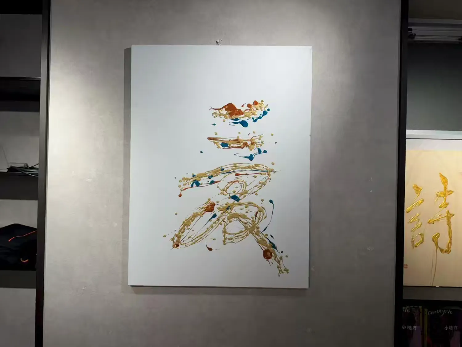 其立体书法和现代抽象艺术作品