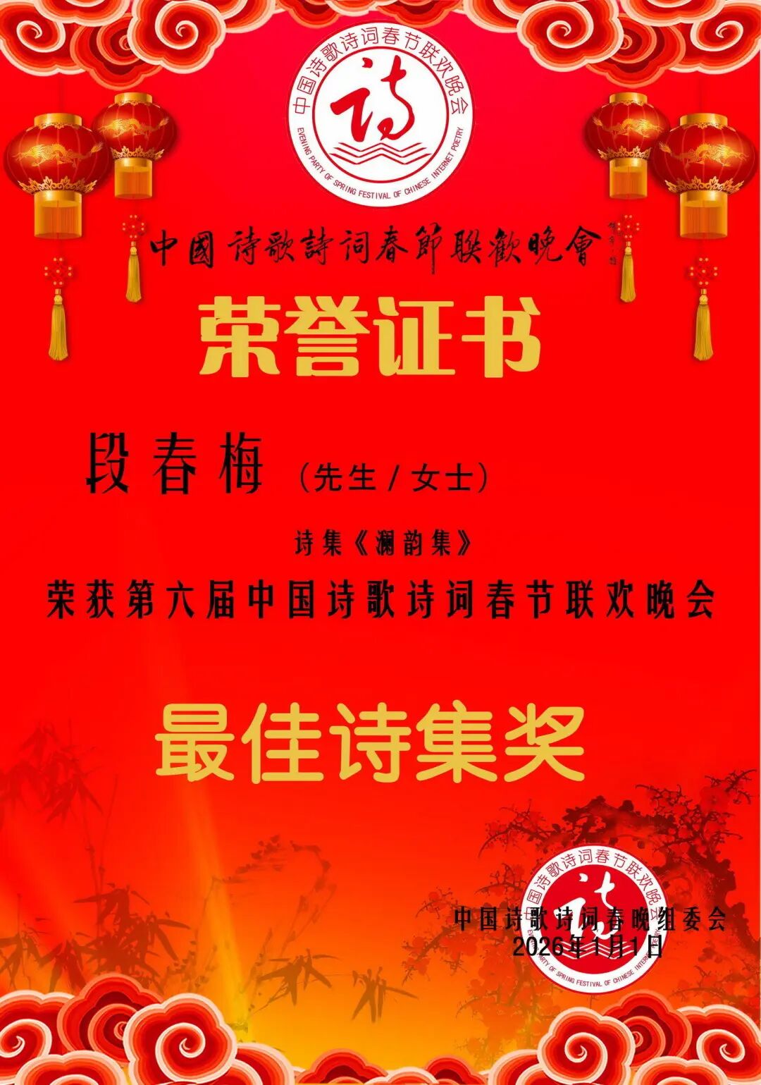 八卷诗心凝暖韵,一纸澜韵诉衷肠。衷心祝贺段春梅校友斩获文学大奖、诗集顺利出版,并荣膺第六届中国诗歌诗词春晚两项重要奖项!期待她未来创作出更多优秀作品,继续为母校争光,为华语文学事业添彩,也愿每一位校友都能在热爱的领域坚守初心、绽放光彩。
