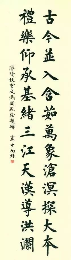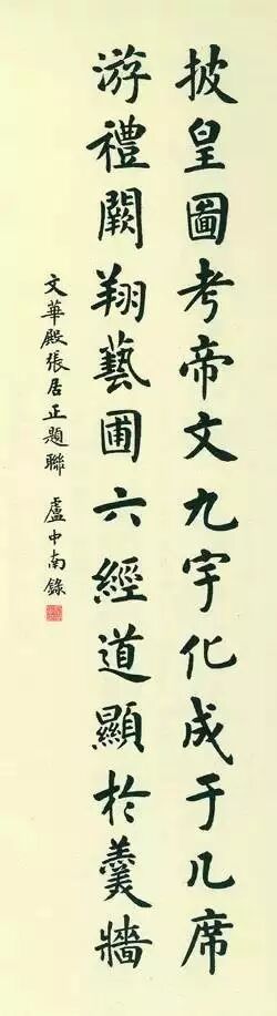 我们今天从北京故宫等处尚能观赏到一些楹联,虽或犹存明清科举所规范的馆阁遗风,仍可领略其书写者的满腹经纶而具有的大家气韵。