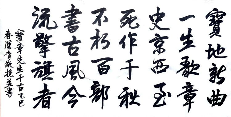2月6日,卫汉青书写的“宝章千古”藏头诗。