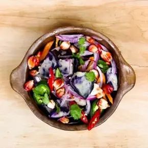 【打饭包】据说有一次努尔哈赤在行军途中,路过一户农家,还没吃饭就要启程,主妇着急就用生菜叶子包上新做好的米饭,拌上大酱和大葱,让士兵带着路上吃,大受欢迎。这种做法慢慢由军中传到民间。东北人包饭包叫打饭包,米饭用大米和小米混在一起焖成的二米捞饭;用那种刚采摘的新鲜的大白菜叶子或生菜叶;东北独特味道的大酱做成的鸡蛋酱;有时还要拌上东北独特做法的油汪汪的土豆泥和新鲜的葱丝香菜;两手捧着吃,你好这口不?