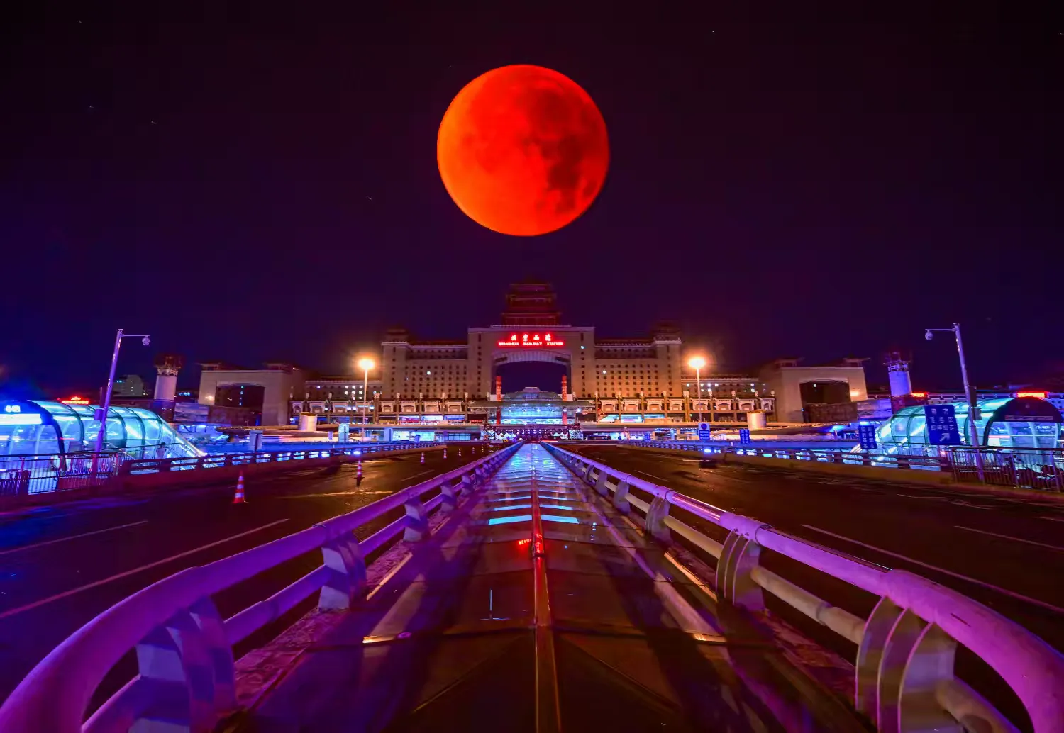 [摘要] 华夏网:《血色玉盘:2025红月亮》作者:王二初亏时分,天地间泛起青铜色的涟漪。北京城的秋夜浸在薄霭里,我站在景山万春亭畔,看那轮满月正被无形的巨齿缓缓啮咬。月盘边缘先是泛起蟹壳青,继而化作熔金般的橙红,仿佛上古匠人将半块和氏璧投入熔炉,让日月精华在煅烧中析出层层叠叠的光焰。故宫琉璃瓦上的鎏金瑞兽在血色