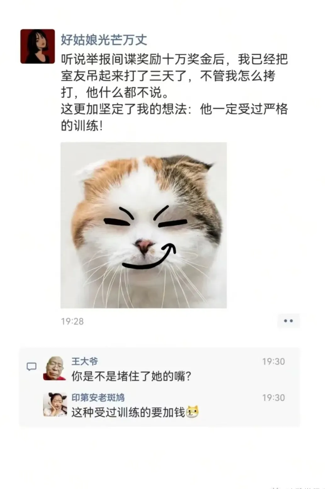 [摘要] 1.孙悟空和牛魔王的老婆铁扇公主在一旁聊天:“你为什么总是穿裤子,从来不穿裙子”她脸红了:“因为我的腿丑,牛魔王不喜欢我的腿. " "哦,好吧,那你为什么不戴头套?2."老公,我楼下有个快递员,帮我取一下! " "不行!我在玩游戏! " "快点,楼下有人等着! " "不行!除非你给我100元! " "我给你200元,你快下去。"老公拿着