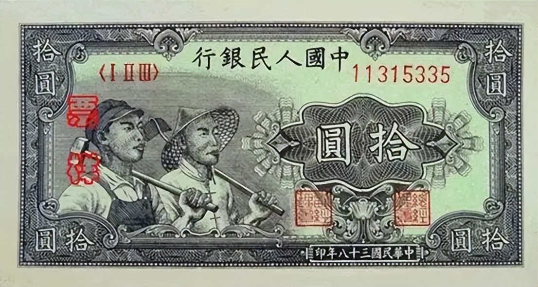 第一套人民币1948年12月1日-1953年12月陆续发行。只有纸币,没有硬币,共有12种面值,62种版别。