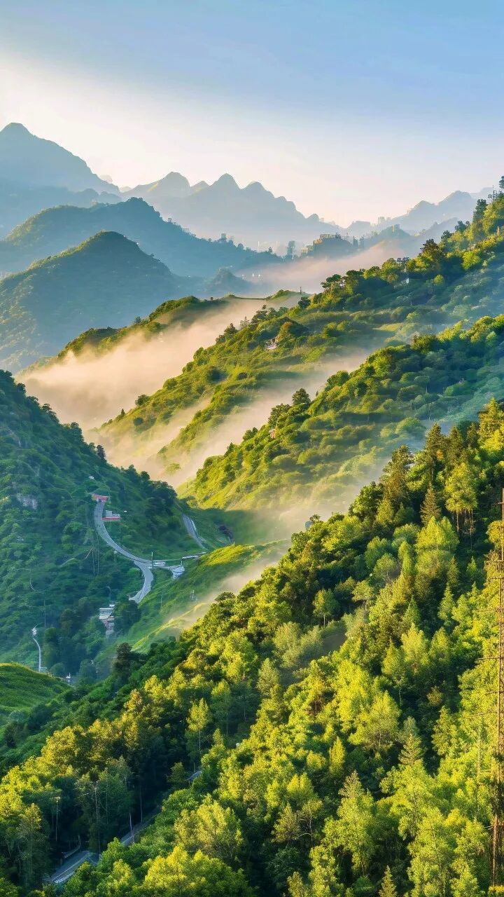 1. 森林与高山:山间,阳光从一侧山顶穿透森林,林间云雾未散,这时候竖拍,让视线从前景的森林,一直向上延伸到顶部的光线,瞬间就有了“巍峨”和“神圣”的感觉。拍瀑布、峡谷也一样,竖拍能强调高度和纵深感。⏬
