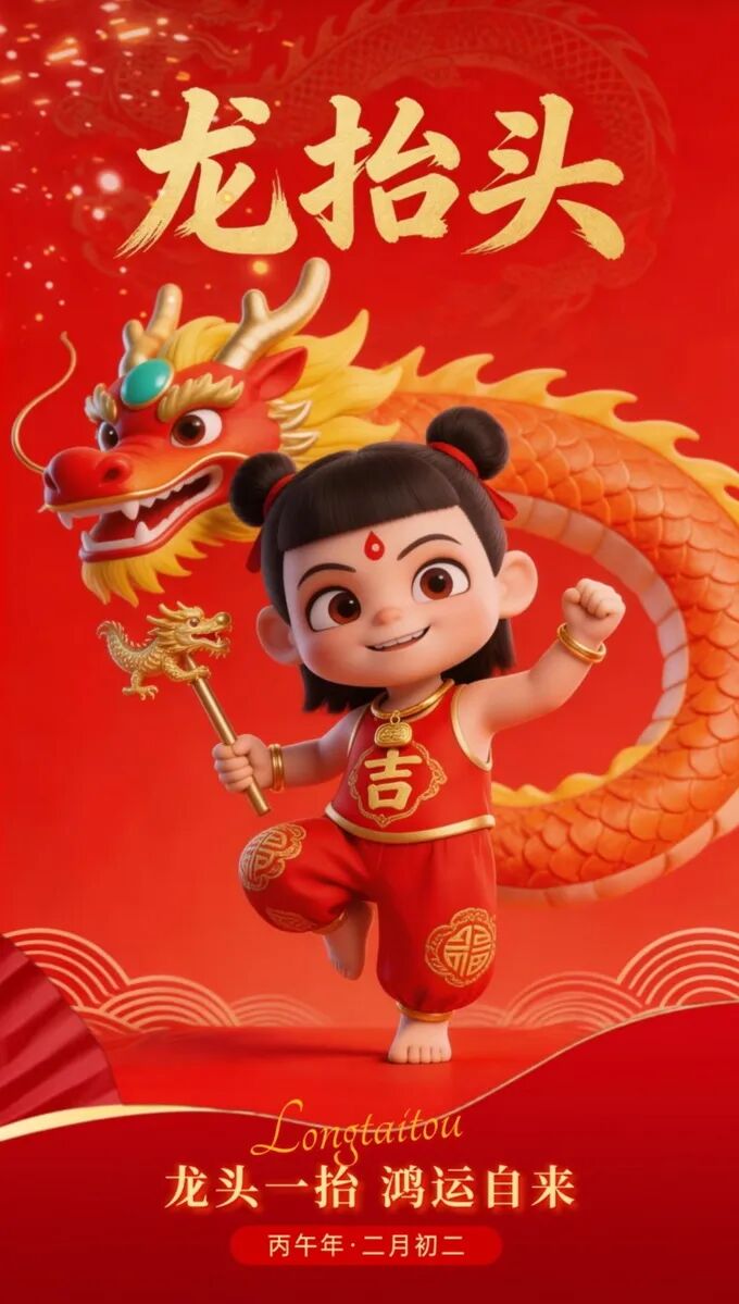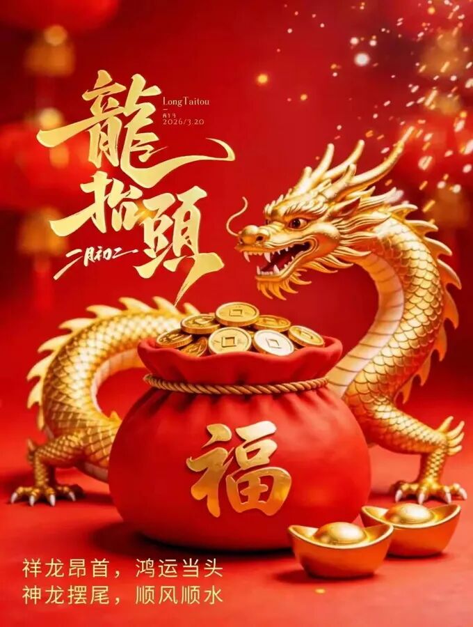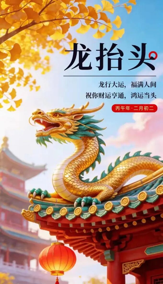 1. 二月二,龙抬头,愿你一年顺顺当当。