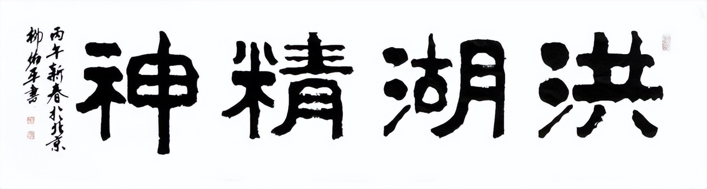 其次是主动的 “化合”和“酿造”。他并未将自己禁锢于“柳体”一门,而是以开阔的视野上溯汉隶之古拙浑朴,旁参魏碑之雄强、行草之潇洒,广泛汲纳传统养分。更为关键的是,他将个人修持(禅修的静定和明澈)和生命体验(对“洪湖精神”的体认和内化)作为关键的“催化剂”和“发酵剂”,注入到对传统法度的理解和运用之中。传统法度和个人心性、地域精神在此发生深刻的“化学反应”。